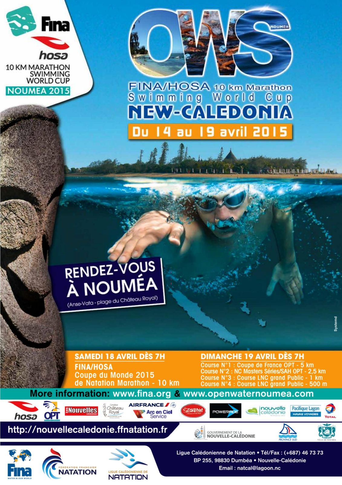18.aprila 2015.godine se u mestu Noumea ,New-caledonia (Francuska), održava se treća trka u okviru FINA/Hosa 10km Marathon Swimming World Cup-a.Učestovaće 40. inostranih takmičara iz 10.zemalja.To takmičenje počinje u subotu 18.aprila u 9.časova na plaži Anse Vata (Hotel Château Royal).Šire informacije možete pronaći na