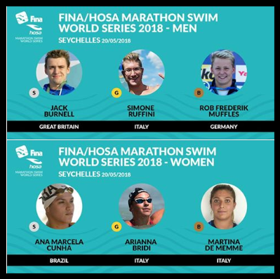 Na upravo održanom svetskom kupu FINA/HOSA Marathon Swim World Series 2018 #2 na Sejšelima , za razliku od prvog takmičenja u Dohi kada su dominirali Holandjani aktuelni olimpijski pobednici ovde su dominaciju imali Italijani.