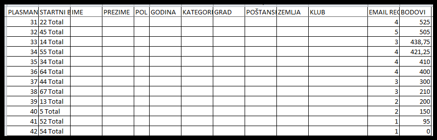 SPECIFIKACIJA DOSADAŠNJIH REZULTATA POJEDINAČNO PO TAKMIČARIMA SU NA SLEDEĆEM PREGLEDU
