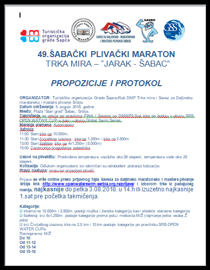 31.jul 2018.-Propozicije i Protokol takmičenja u Šapcu