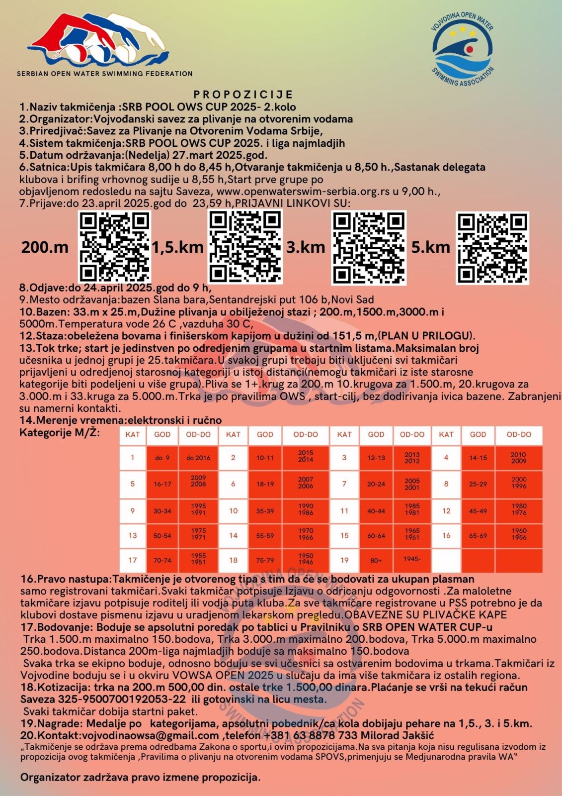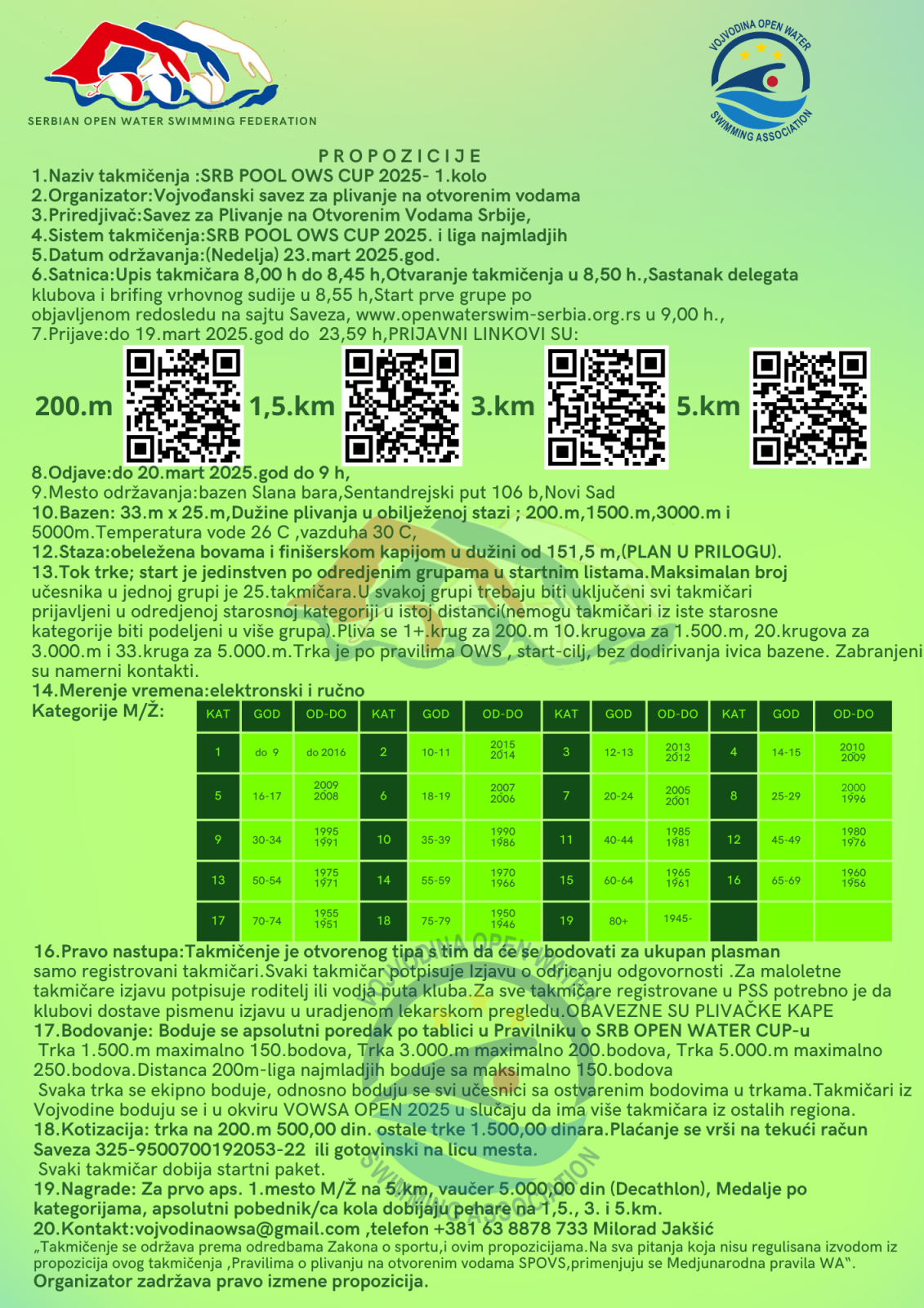 14.mart 2025.-SRB POOL OWS CUP 2025.-Najava 1.kola u Novom Sadu,bazen Slana bara 23.03.2025.