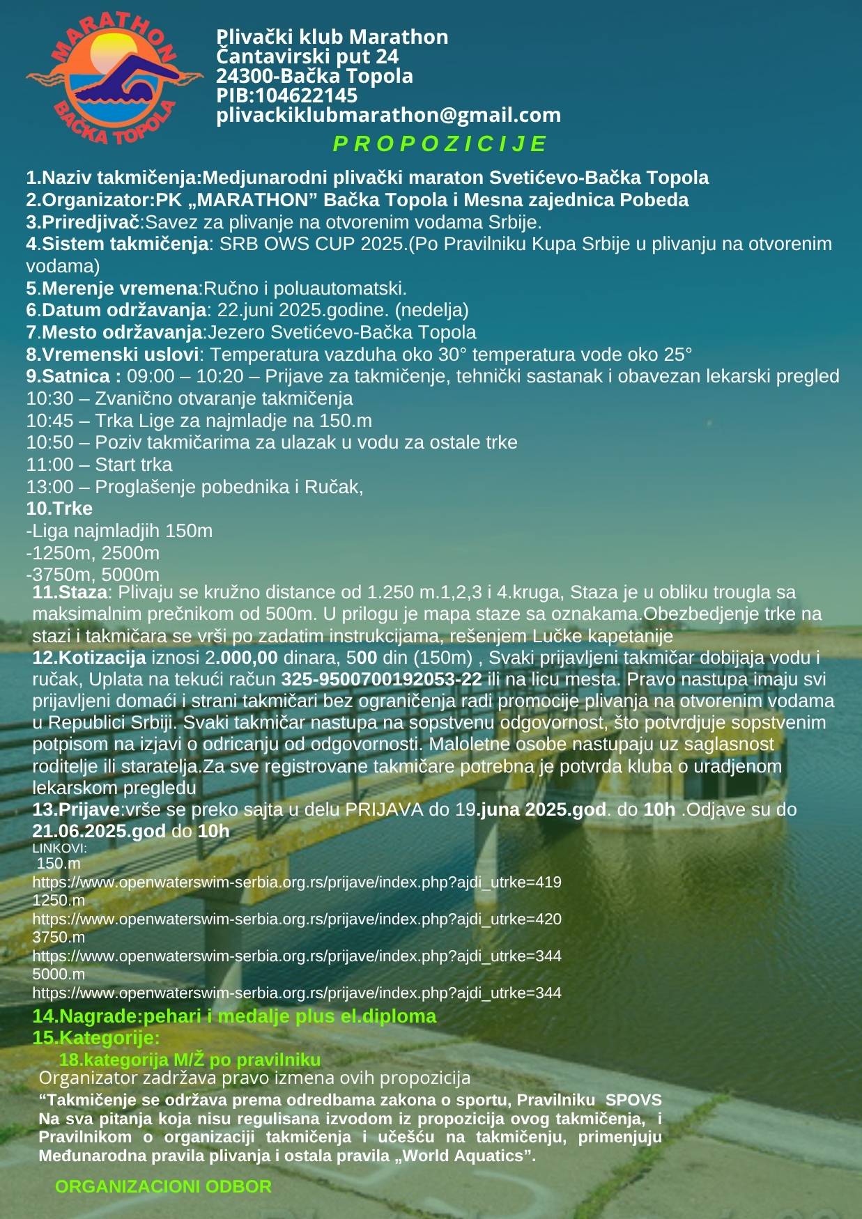 - 03.avgust 2025.-Najava 12.Velikogospojinskog plivačkog maratona Novi Bečej za 23.08.2025.