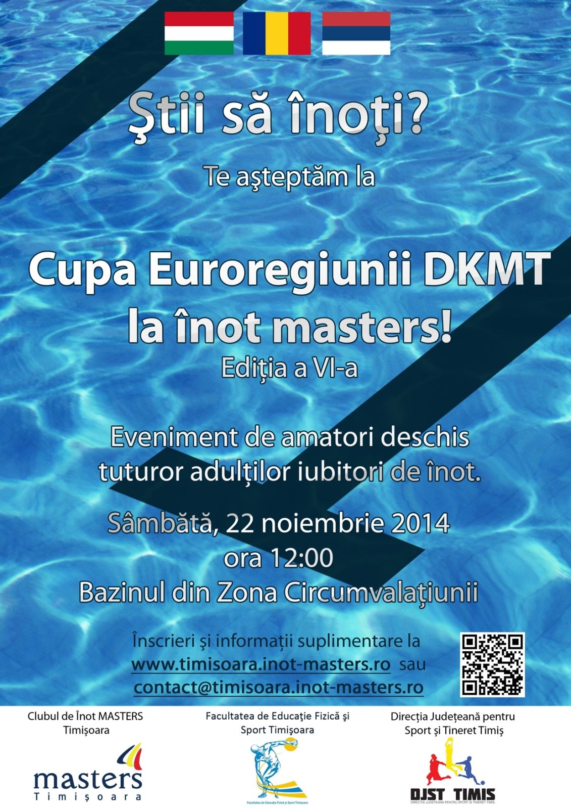 U Temišvaru se 22.11.2014.godine održava VI Masters plivačko takmičenje pod nazivom Kup Euro regiona DKMT.U prilogu su propozicije na srpskom i madjarskom jeziku.