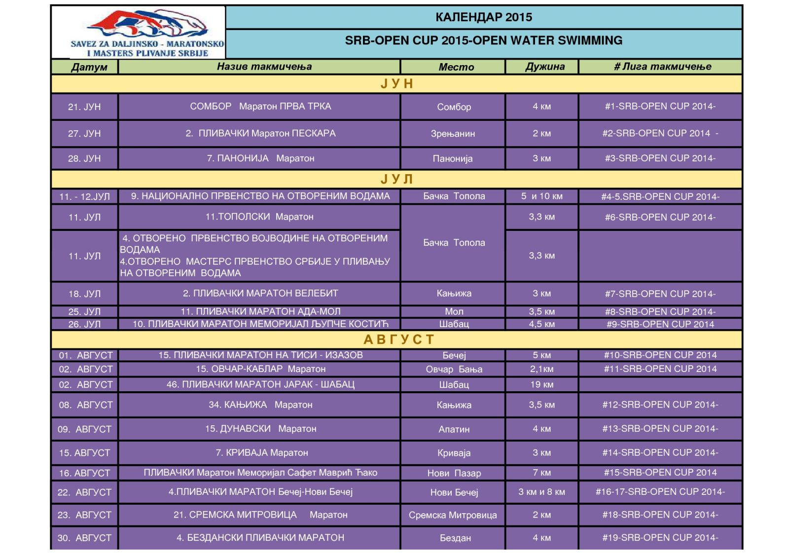 01.oktobar 2014.-Preliminarni Kalendar OWS za 2015.godinu
