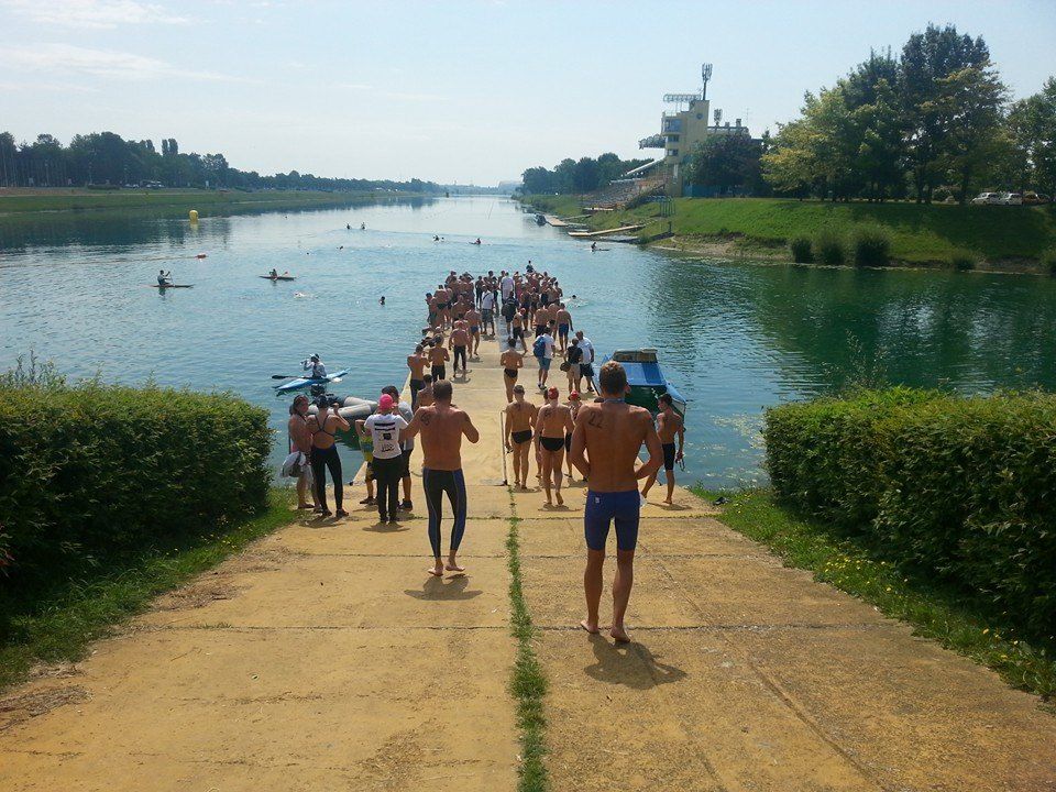 U 11.časova počinje 14.Medjunarodni plivački maraton "ZAGREB OPEN 2014".Ukupno je prijavljeno do 02.07.2014. 98.takmičara iz Hrvatske,Slovenije,Slovačke,Madjarske i Srbije.Ova slika prikazuje atmosferu pred start takmičenja.Posle mnogo problema i velikog truda uspeli smo da pošaljemo ekipu od 6.takmičara na čelu sa našim saveznim selektorom Nenadom Jovićem.