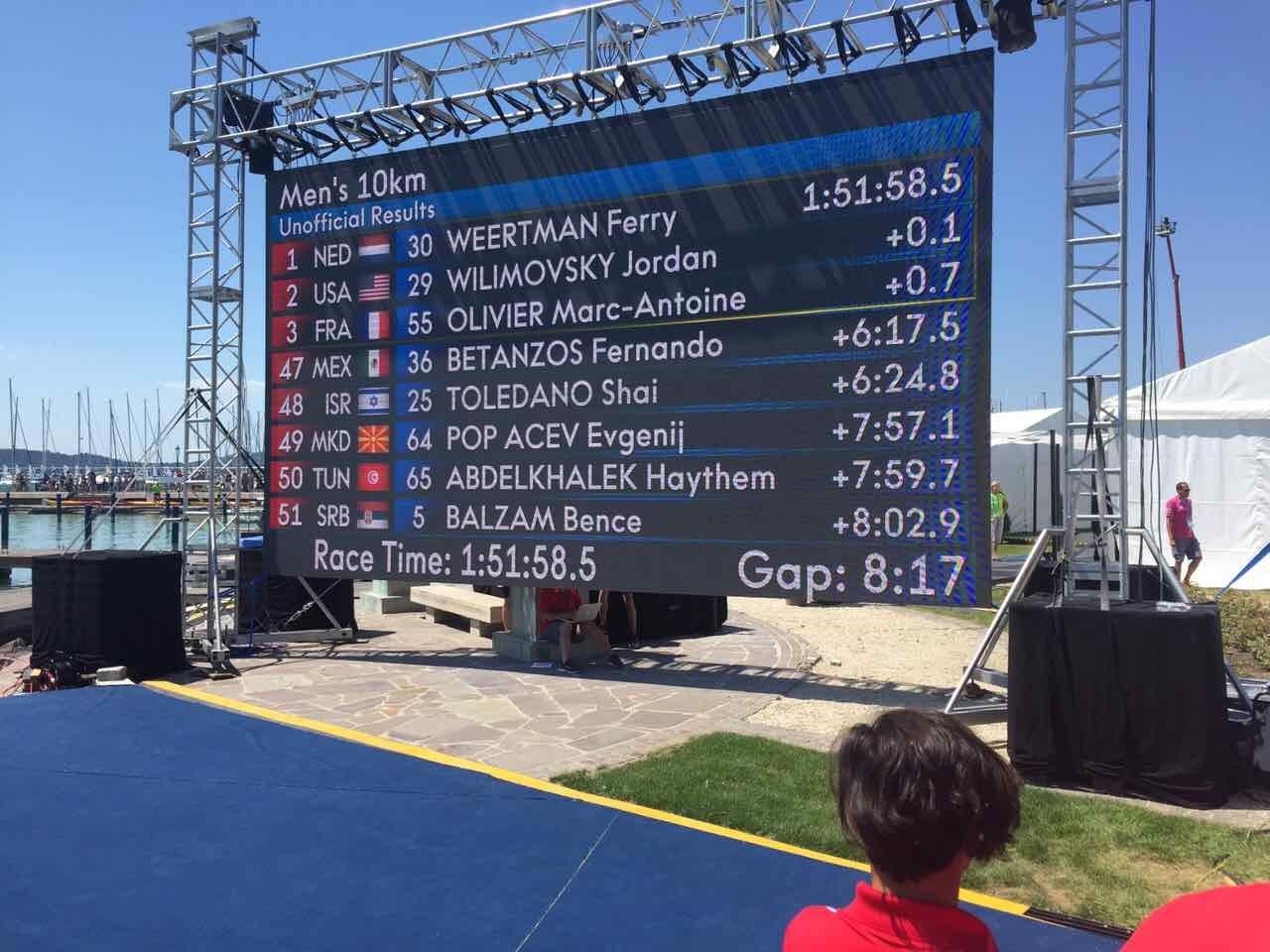 Bence Balzam je zauzeo 51.mesto sa vremenom 2:00:01,40 sa zaostatkom za prvoplasiranim 8:02,90.Ukupno je učetovalo 65.plivača koji su završili trku.