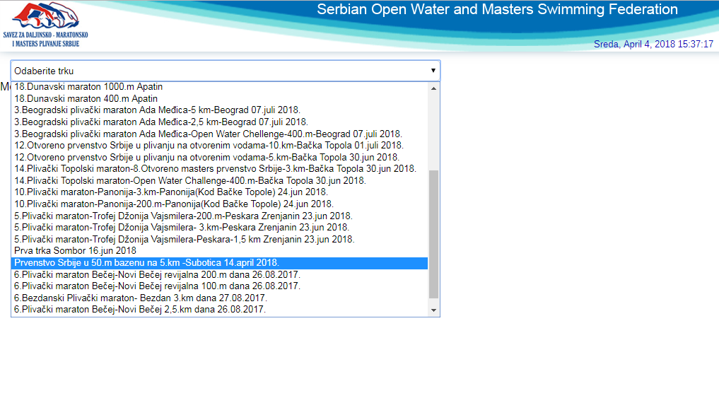 Iz padajućeg menija izaberete trku i kliknete