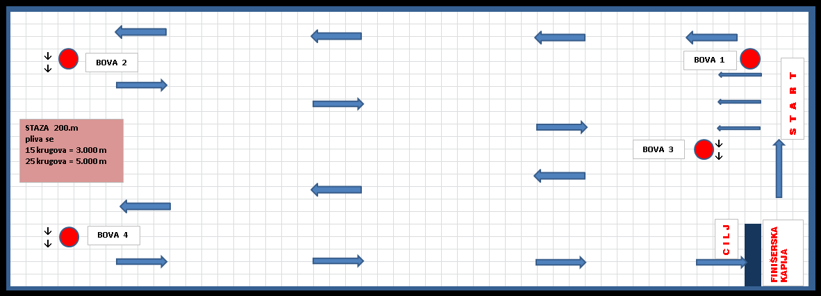 Za trasu od 3.km će biti potrebno isplivati 15.krugova a za 5.km 25.