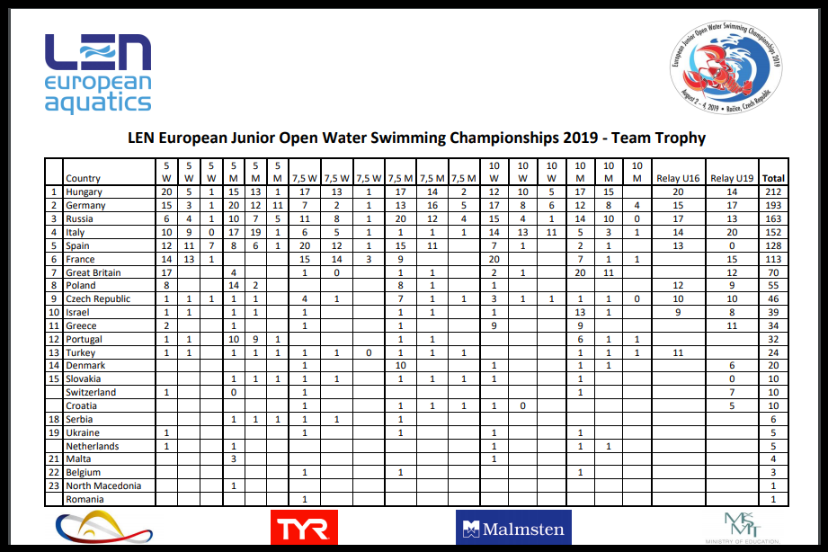 Na danas završenom Evropskom Juniorskom Prvenstvu u plivanju na otvorenim vodama, naša mlada reprezentacija svoj debi na međunarodnoj evropskoj sceni okončala je zauzevši 18.mesto od 24.učesnice tog takmičenja.Ostaće ipak žal za na neki način izgubljenih 8.bodova.Današnjim samo učešćem naše štafete za koju smo imali odgovarajući tim u kategoriji 16U u ukupnom poredku zauzeli bi 15.mesto.Nažalost što je ova reprezentacija otišla na samofinasirajući način nije bilo sredstava da se ostane još dva dana kako bi isplivala tu trku.Ali idemo dalje pripremamo se već sada sa daleko većim ambicijama za sledeće Evropsko Juniorsko OWS , koje će biti održano ponovo iduće godine.
