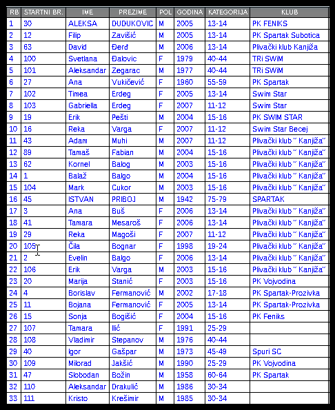 SLUŽBENA LISTA PLIVAČA -45 ° IZDANJE: