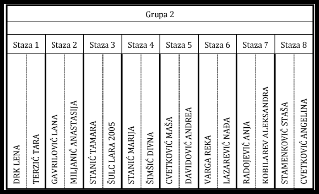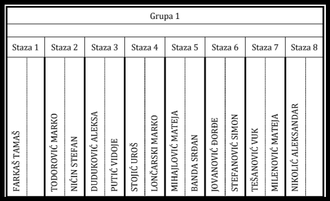 Okvirna satnica*podložna promenama u odnosu na brzinu plivanje po grupama