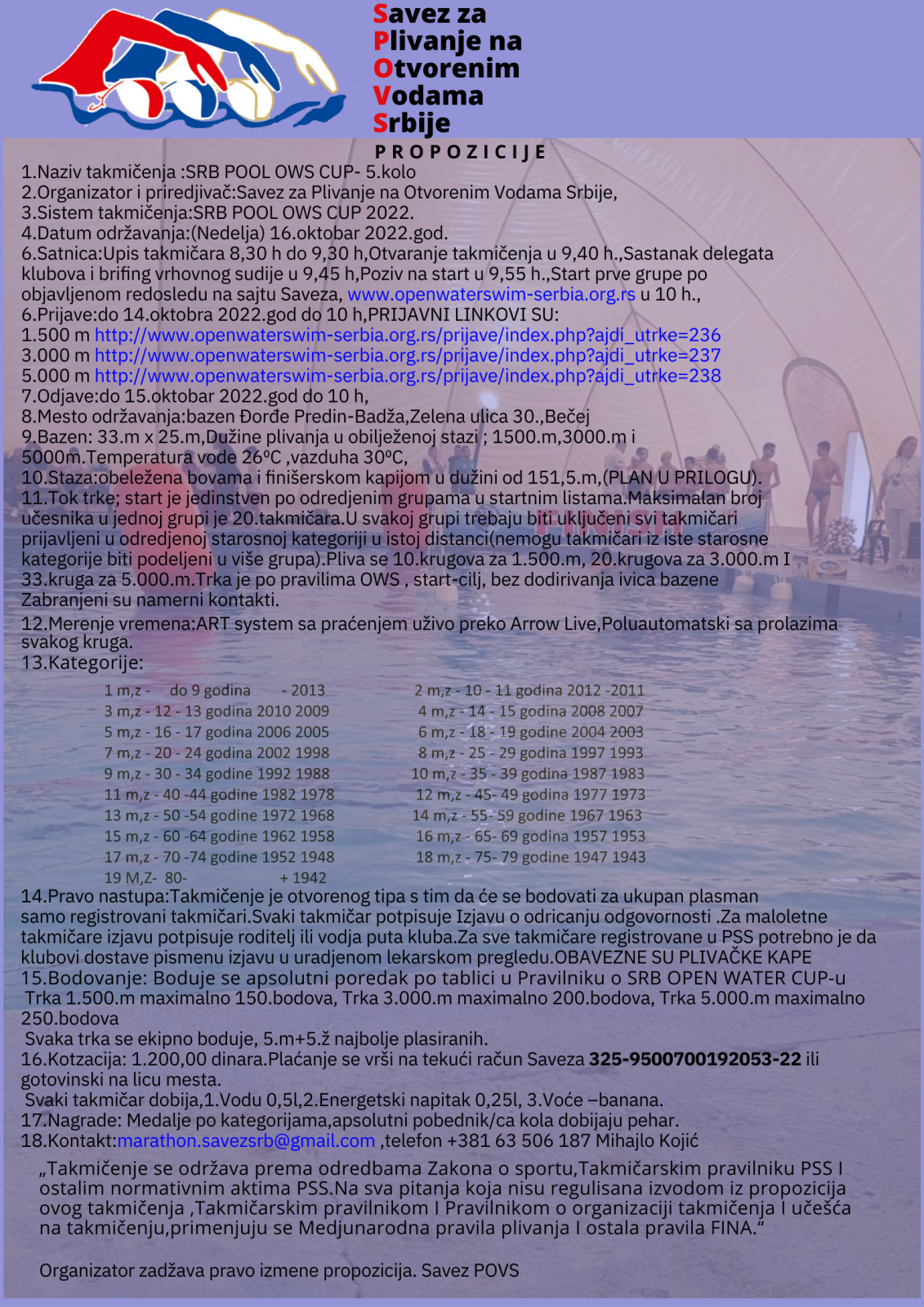 21.oktobar 2022.-Ažurirani rezultati SRB POOL OWS CUPa sa 16.10.2022.g