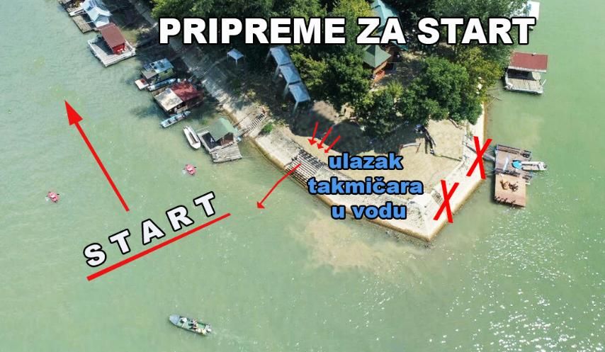 Start-početak trke se nalazi na gornjem špicu ostrva. Pliva se jedna dužina nizvodno od 1250 metara, pun krug oko Ade Međice od 2500 metara i dva kruga oko Ade Međice za distancu od 5000 metara. Staza je ucrtana na planu takmičenja. Temperatura vode oko 23 stepeni (na osnovu višegodišnjeg proseka temperature u ovom periodu godine).