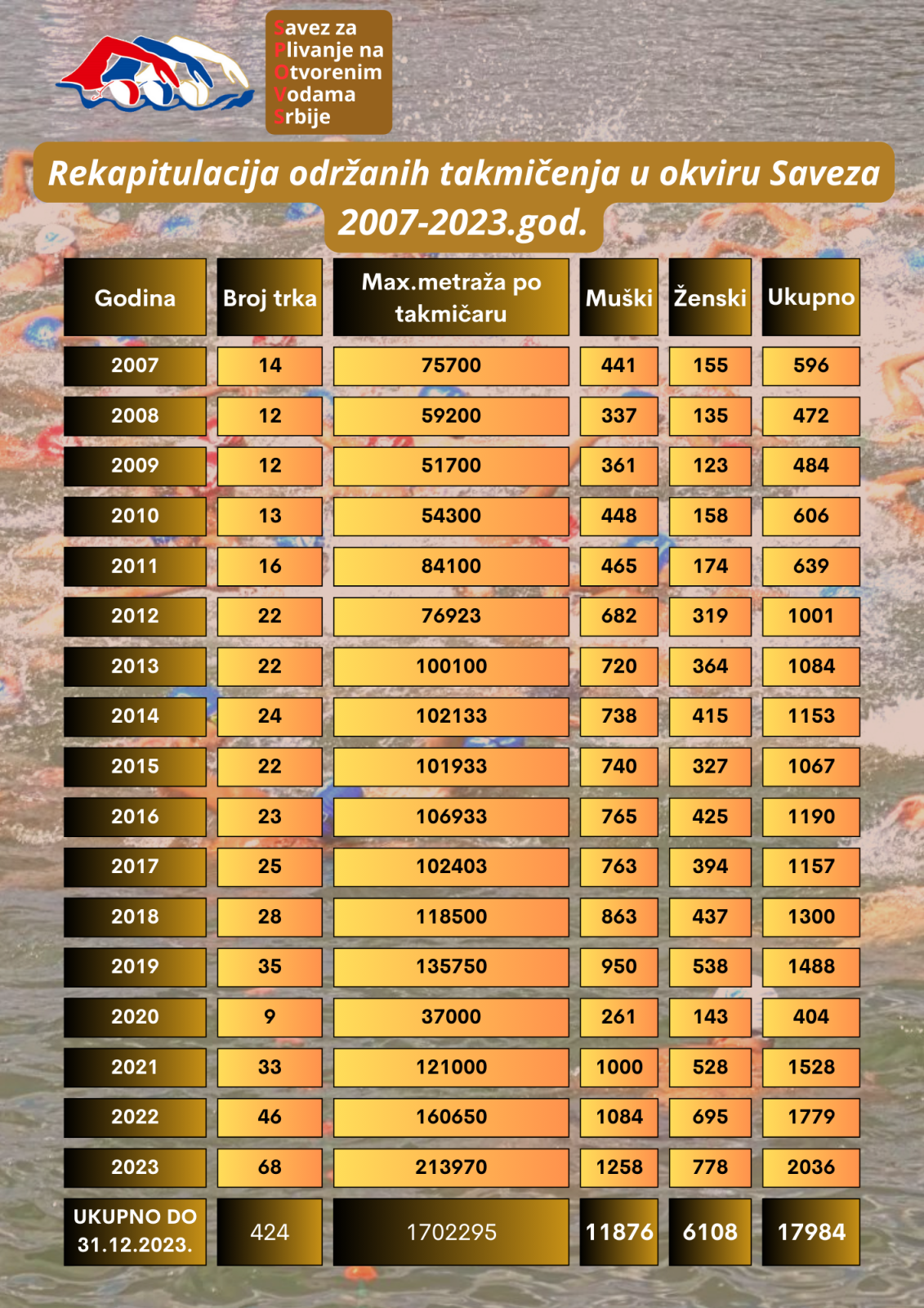 Iz navedenog pregleda se vidi od 2007-2023 god. konstantan porast broja takmičara i broja takmičenja.Porast je evidentan u 2022 i 2023 god. kada smo ponovo aktivirali zimsku ligu i imamo takmičenja tokom čitave godine.