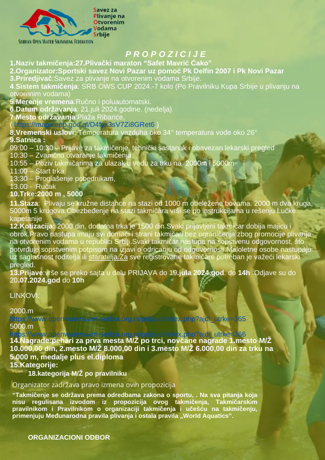 16.juli 2024.-Najava 27.Plivačkog maratona Safet Mavrić Ćako za 21.07.2024.