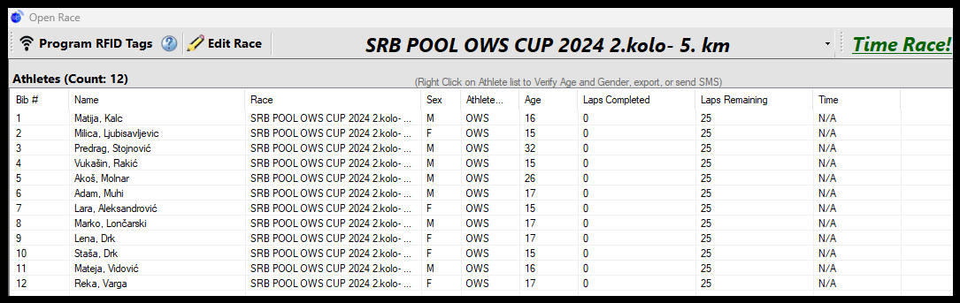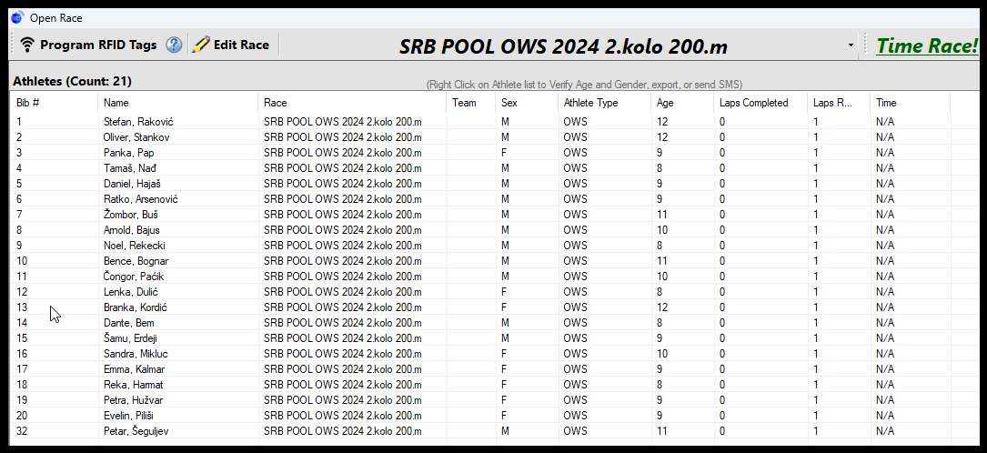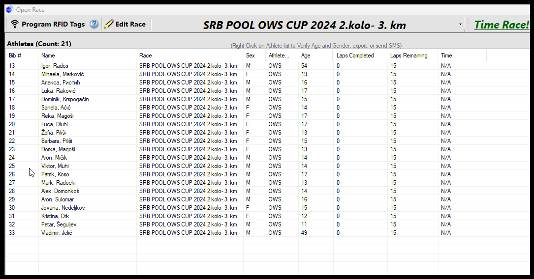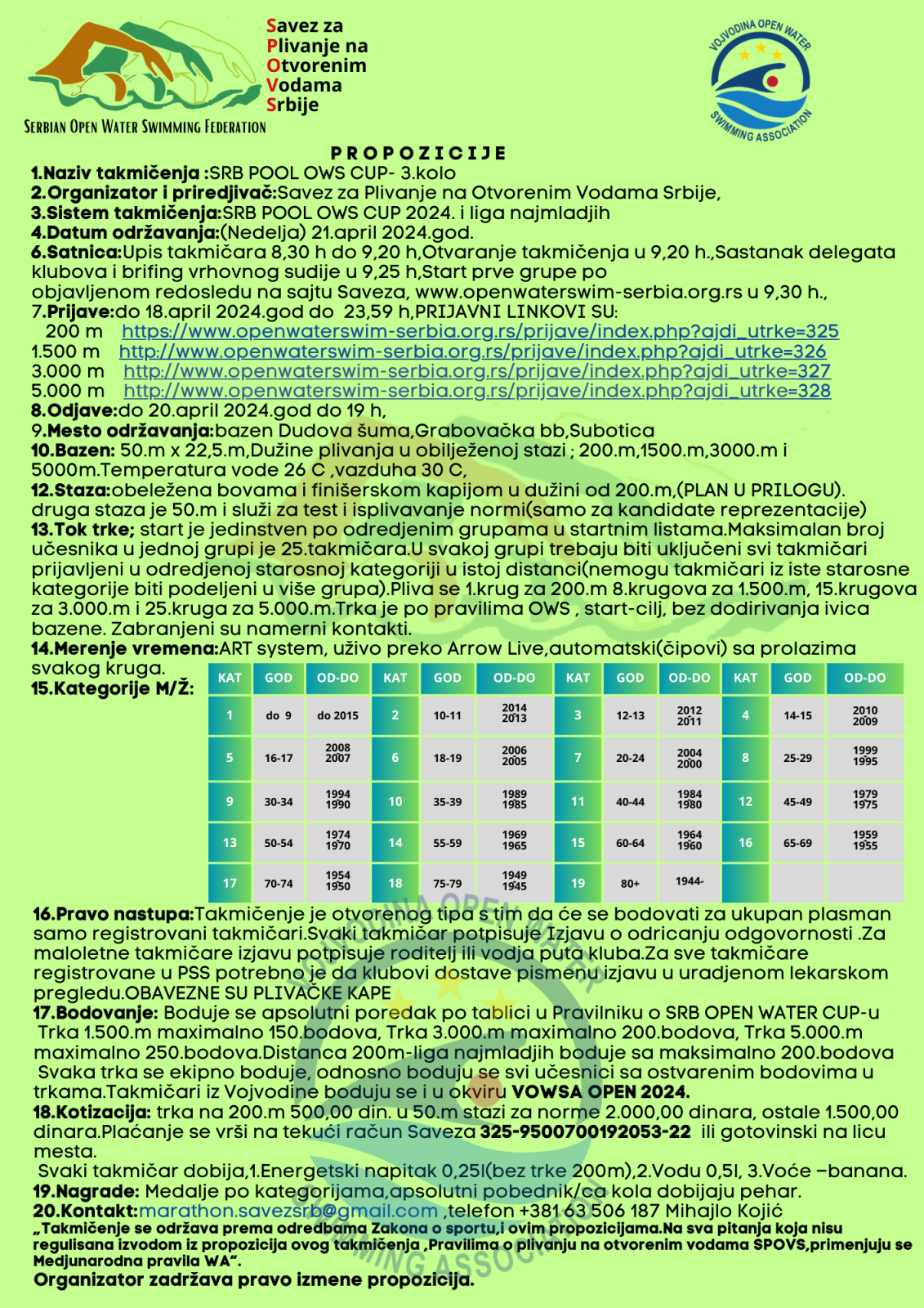 19.april 2024.-Startne liste SRB POOL OWS CUP 2024. 3.kolo-Subotica 21.04.2024.