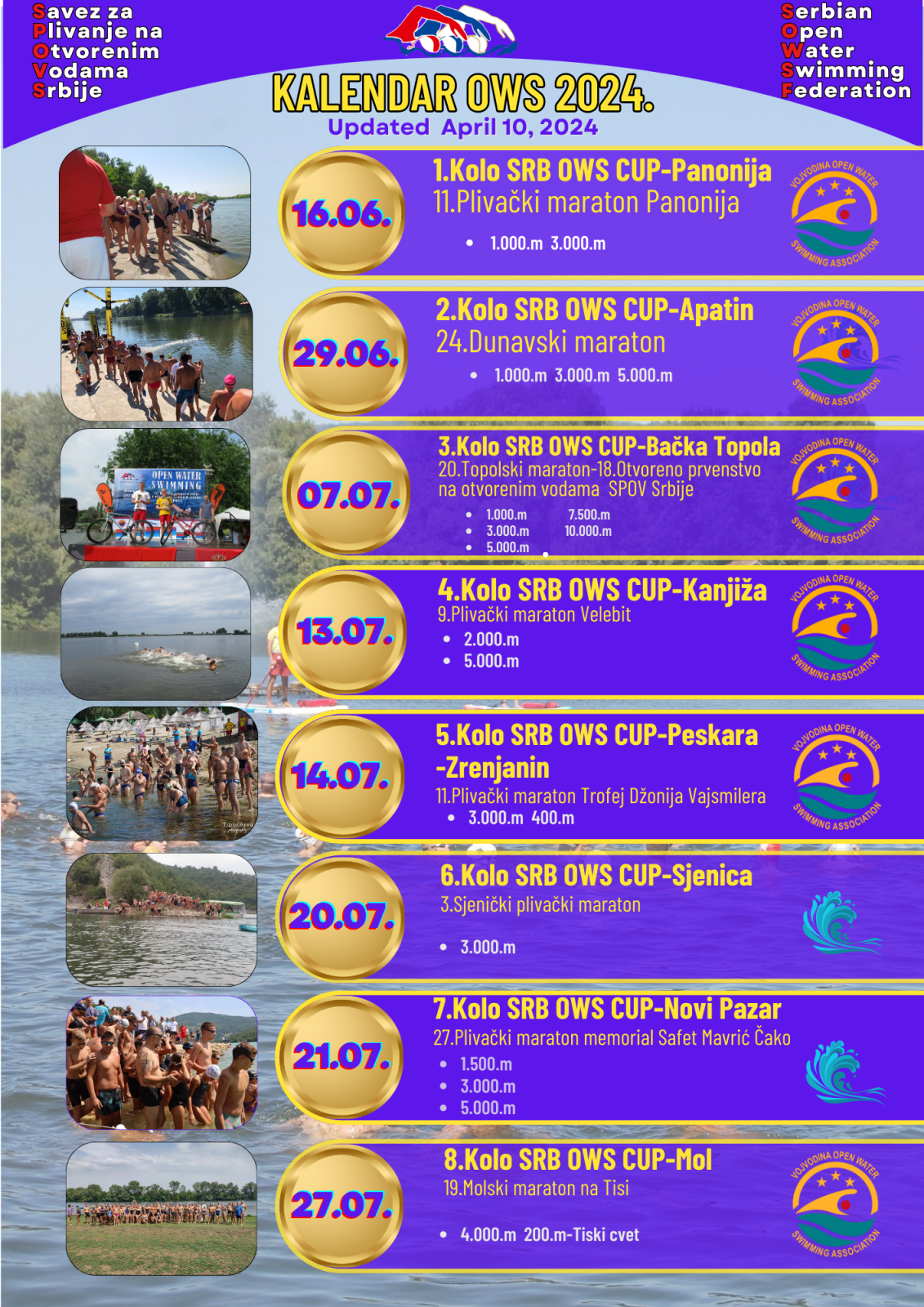 15.april 2024.-Kalendar Saveza POV Srbije 2024. samo za otvorene vode, ažuriran sa 10.aprilom 2024.